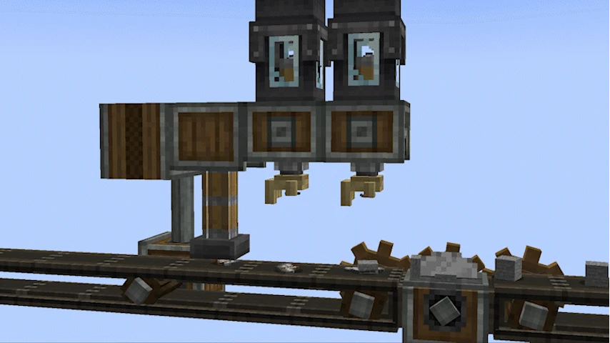 Sequenced Assembly starts with a base item. The item passes through or under machines like Deployers and Mechanical Saws via Depots or Mechanical Belts to create an incomplete item. The incomplete item needs to pass through the next stages of crafting and may need to repeat the whole process multiple times depending on the item being crafted.